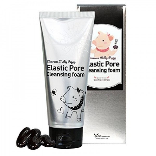 Черная пенка для умывания с древесным углем и растительными экстрактами Elizavecca Milky Piggy Elastic Pore Cleansing Foam