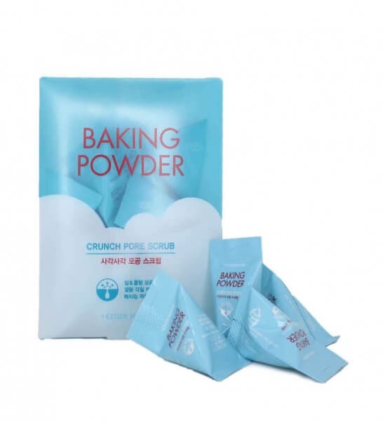 Скраб для лица с содой в пирамидках Etude House Baking Powder Crunch Pore Scrub на 40% состоит из мельчайших крупинок соды и за счет этого эффективно очищает поры от загрязнений, мягко отшелушивает омертвевшие частички кожи, стимулируя клеточное обновление, обеззараживает и оздоравливает тон лица.